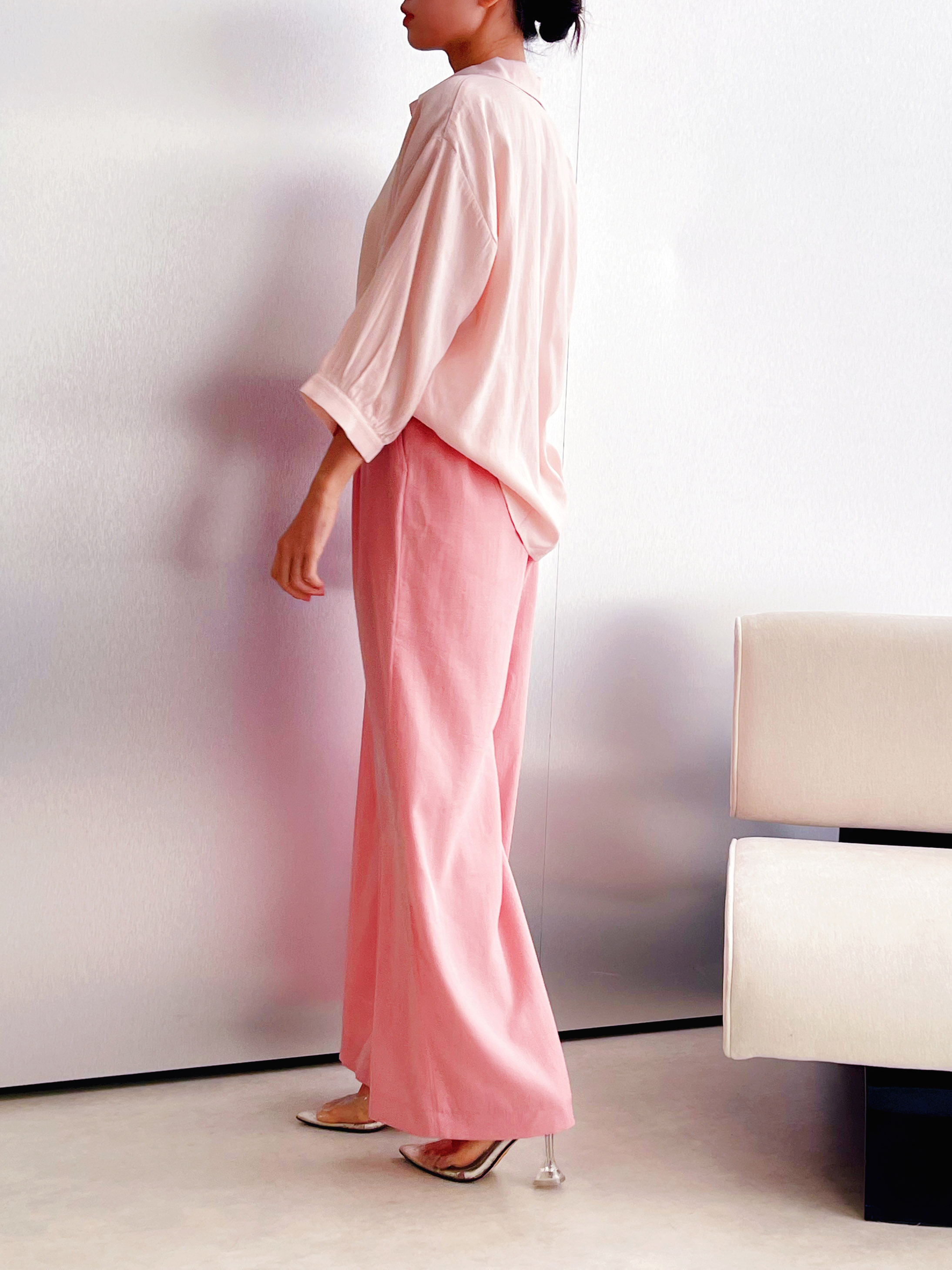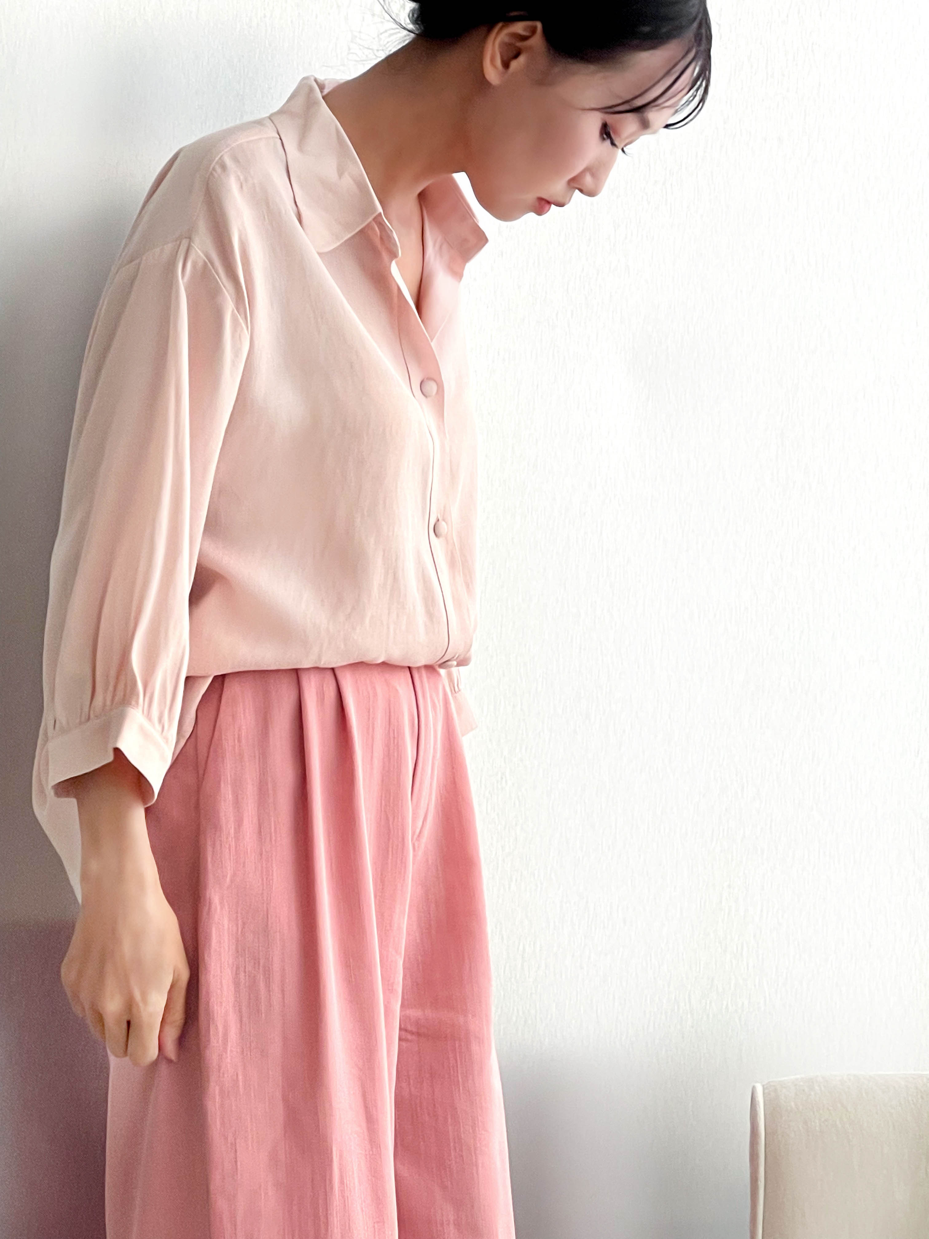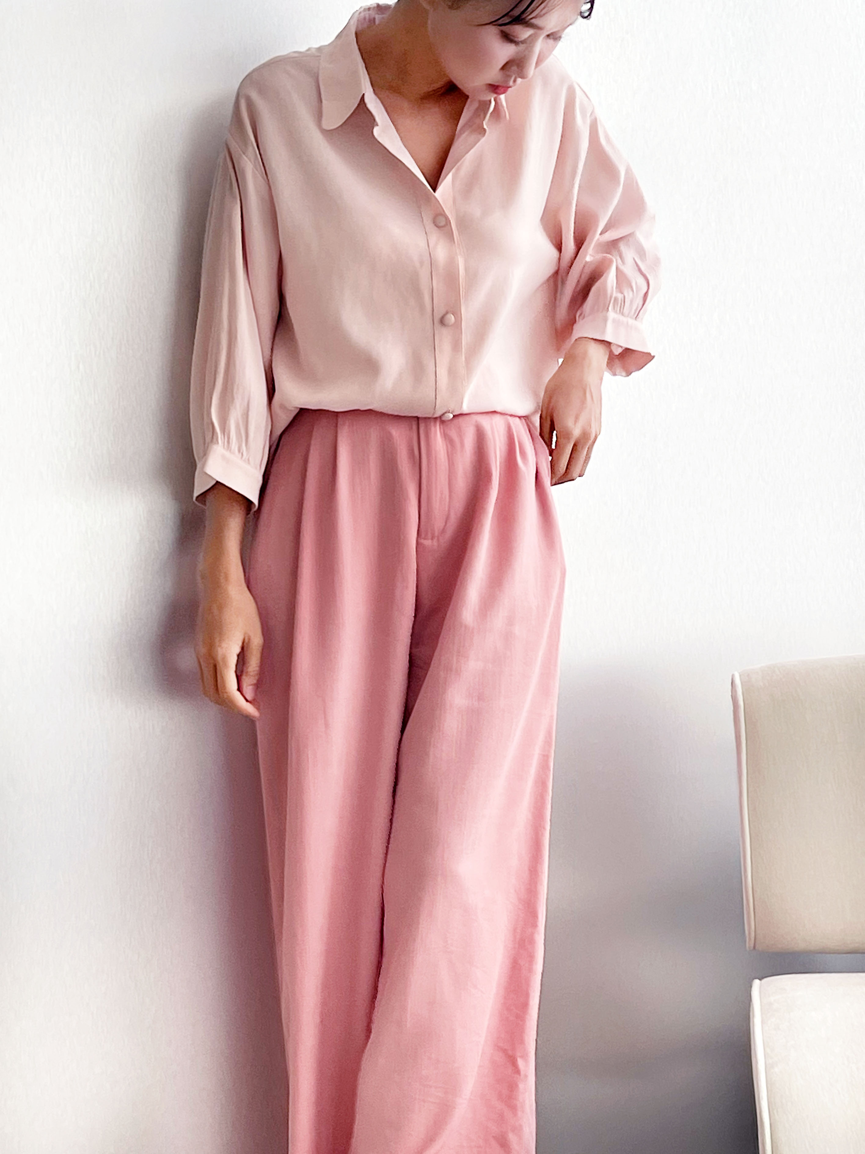 áo somi basic hồng pastel lá cổ tròn tay lỡ
